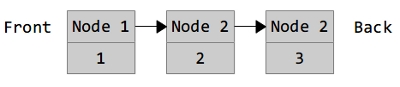 串列中的每個節點都會包含一個值(此例為1、2或3)以及一個指向下一個節點的指標。因為這是一個雙向鏈結串列,所以每一個節點還會使用一個指標來指向前一個節點,可使用下列的程式建立一個這樣的串列: